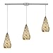 546-3L-SLVM-CRC ELK Lighting Curvalo 3-Light Linear Pendant Fixture In Satin Nickel With Silver Multi Crackle Glass