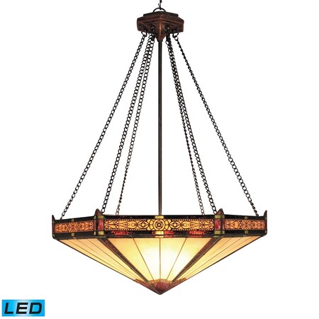 622-AB-LED ELK Lighting Filigree 3-Light Pendant in Aged Bronze with Tiffany Style Glass - Includes LED Bulbs