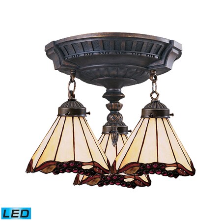 997-AW-03-LED ELK Lighting Mix-N-Match 3-Light Semi Flush in Aged Walnut with Tiffany Style Glass - Includes LED Bulbs