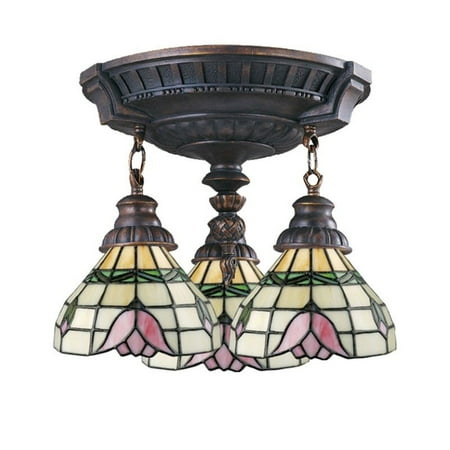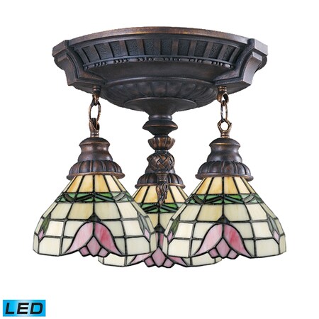 997-AW-09-LED ELK Lighting Mix-N-Match 3-Light Semi Flush in Aged Walnut with Tiffany Style Glass - Includes LED Bulbs