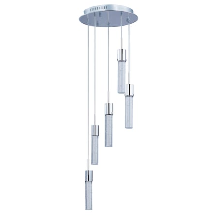 ET2 E22775-91PC Fizz IV Bubble Glass Cylinder LED Round Pendant Ceiling Lighting, 5-Light 40 Watts, Polished Chrome