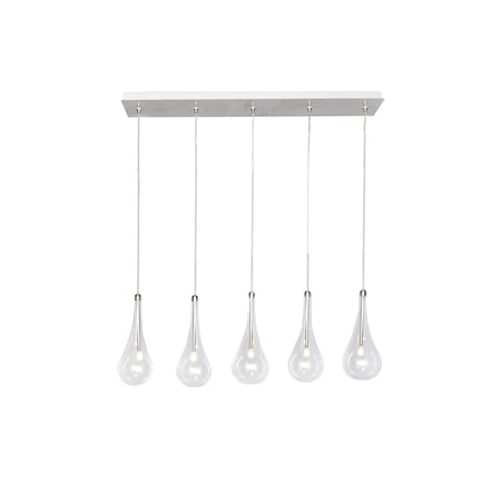 ET2 E23125-18PC Larmes Modern Blown Glass Oversized Teardrops LED Linear Pendant Ceiling Lighting, 5-Light 7.5 Watts, 17"H x 32"L, Polished Chrome