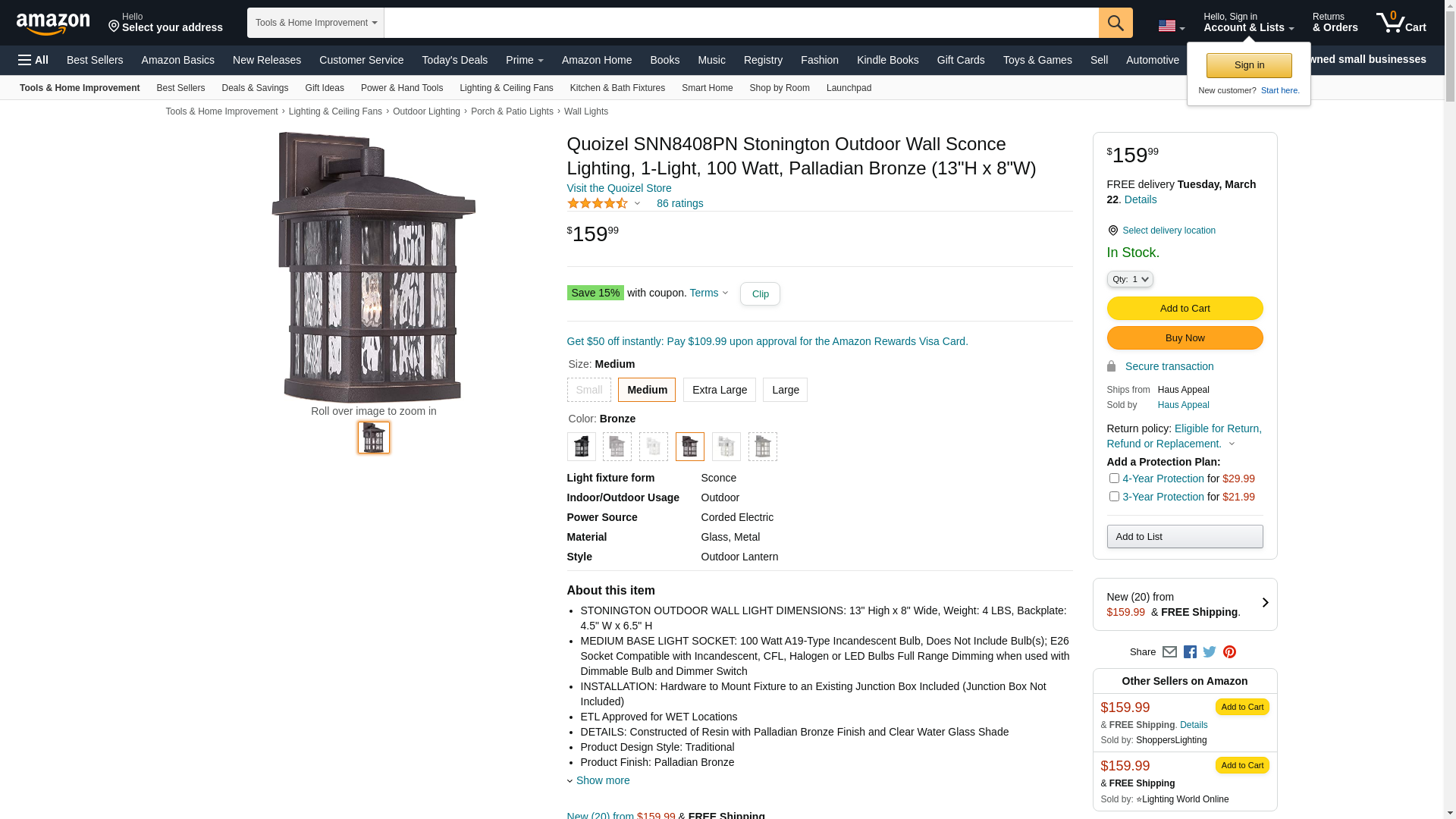 Quoizel SNN8408PN Stonington with Palladian Bronze Finish and Medium Wall Lantern, Brown by Quoizel
