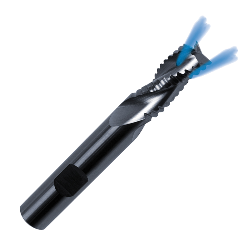 20mm Rough-Tech ALU 3FL Necked Coolant Fed, Bright, Weldon Flat, Coarse Carbide Rougher, 32mm LOC, 54mm Reach 32MM LOC,20MM SHANK,104MM OAL ROUGH-TECH ALU / GS 100 A Right Hand 30? Helix, Right Hand Cut, Center Cutting High Performance Coolant-Through 3 Flute Standard Length Flutes, Extended Neck Relief Coarse Tooth Carbide Rougher, Weldon Flat Shank, .50mm x 45? Corner Chamfer, Bright Uncoated for ramping and helical interpolation roughing aluminum, aluminum alloys, brass, bronze, copper, magnesium and plastic. Series 3364 Guhring Part #9033640200000
