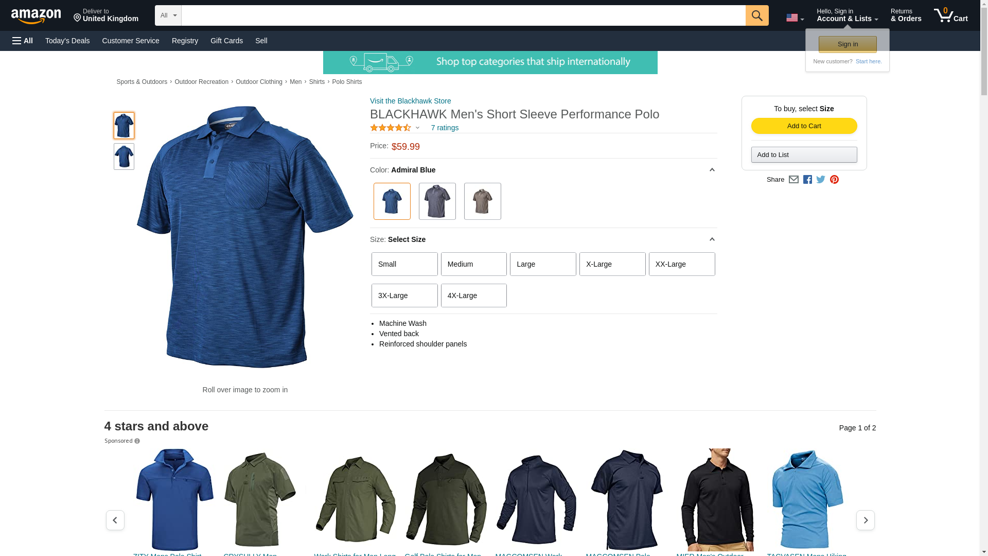 BLACKHAWK Men's Short Sleeve Performance Polo, XX-Large, Admiral Blue