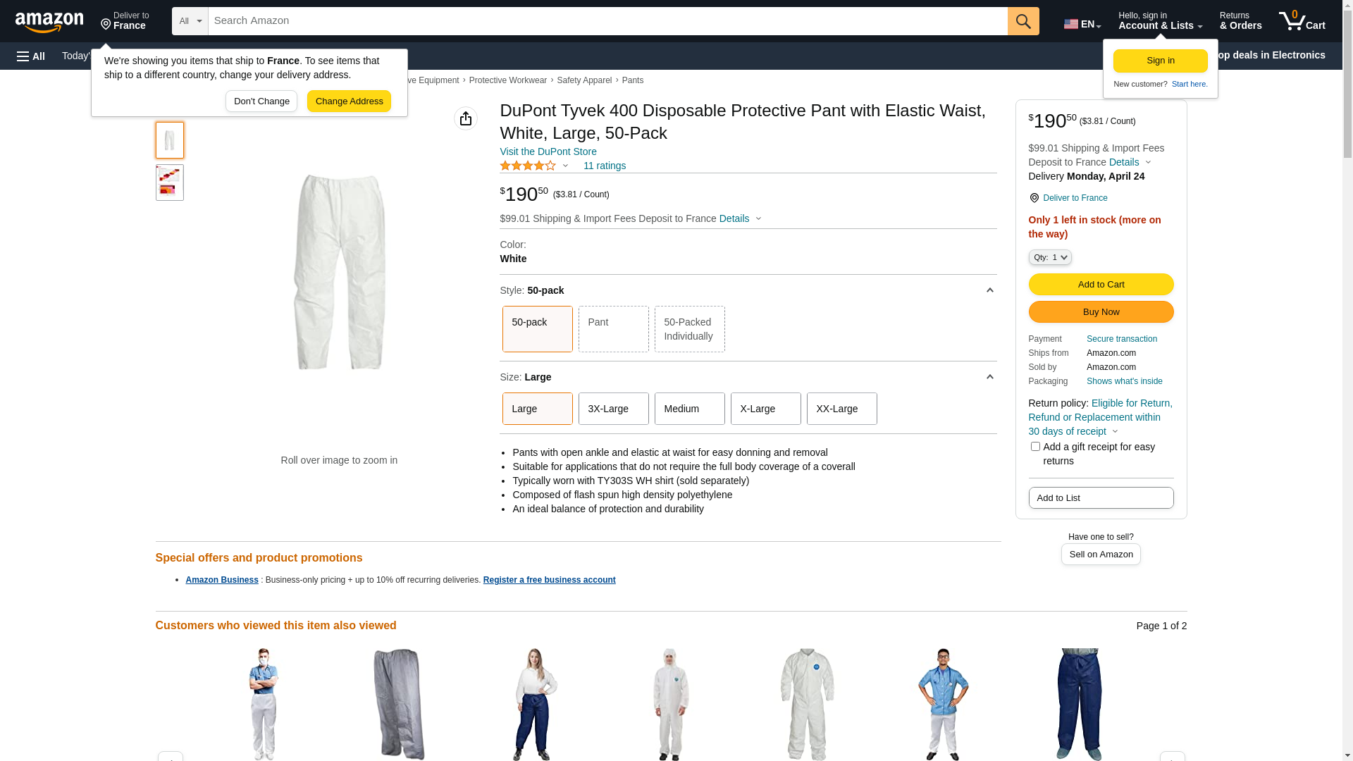 Dupont TY350SWHLG005000 Tyvek Pants, Open Ankles, Elastic Waist, Serged Seams, Large, White (Pack of 50)