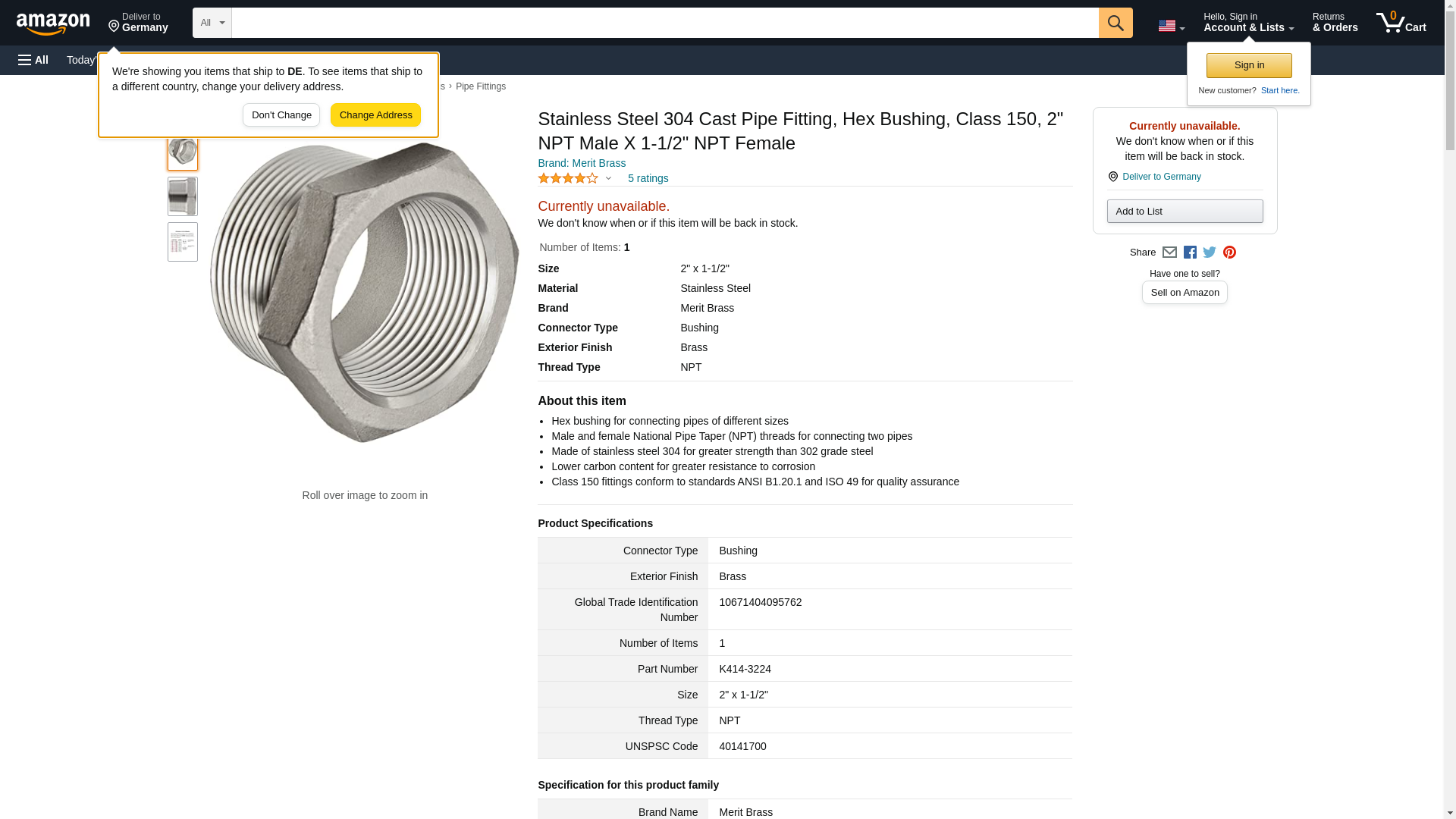 Merit Brass K414-3224 Stainless Steel 304 Cast Pipe Fitting, Hex Bushing, Class 150, 2" x 1-1/2" (Pack of 10)