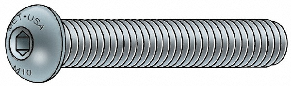 'Metric Socket Head Cap Screw, System of Measurement Metric, Button, Basic Material Steel, Material Grade Alloy Steel, M5-0.80, Length 20mm, Fastener Finish Metric Blue, Fastener Thread Type Metric Coarse, Drive Type Hex Socket, Drive Size 3mm, Thread Style Fully Threaded, Thread Direction Right Hand, Thread Length 20mm, Head Height 2.8mm, Thread Dia. M5, Package Quantity 25'