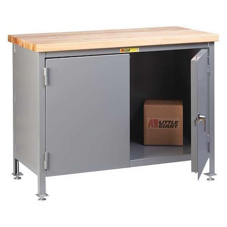 Little Giant WTC-2D-2436-LL Work Center Cabinet with Butcher Block Top, 24" x 36", Gray