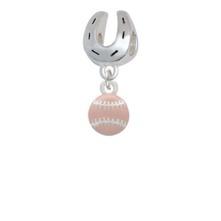 Silver Tone Mini Pink Softball or Baseball - Horseshoe Charm Bead Hanger. Silver Tone, hand enameled charms. Charm size is approx. 0.51 x 0.37 x 0.16 inches (HxWxD) including loop. Charm Hanger Bead is approx. 14x12x9 mm (HxWxD) Hole size 5.5 mm. Our Charm Beads are compatible with most Charm Bead Bracelets. Also makes a great charms pendant. Featured charms is an exclusive Delight & Co. design. We are a family owned company for over 35 years in the U.S.A. PLEASE NOTE: Our products are lead safe, but are not intended for children 14 years and younger.