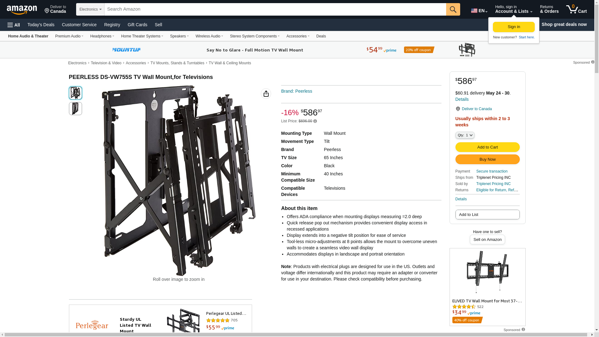 PEERLESS DS-VW755S TV Wall Mount,for Televisions