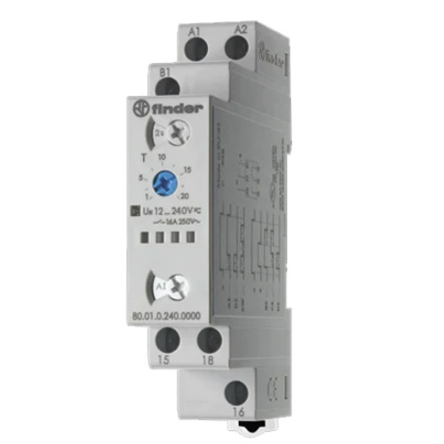 Finder 80.01.0.240.0000, Modular Timer, 80 Series, Multi Function and Multi Voltage, 16A SPDT