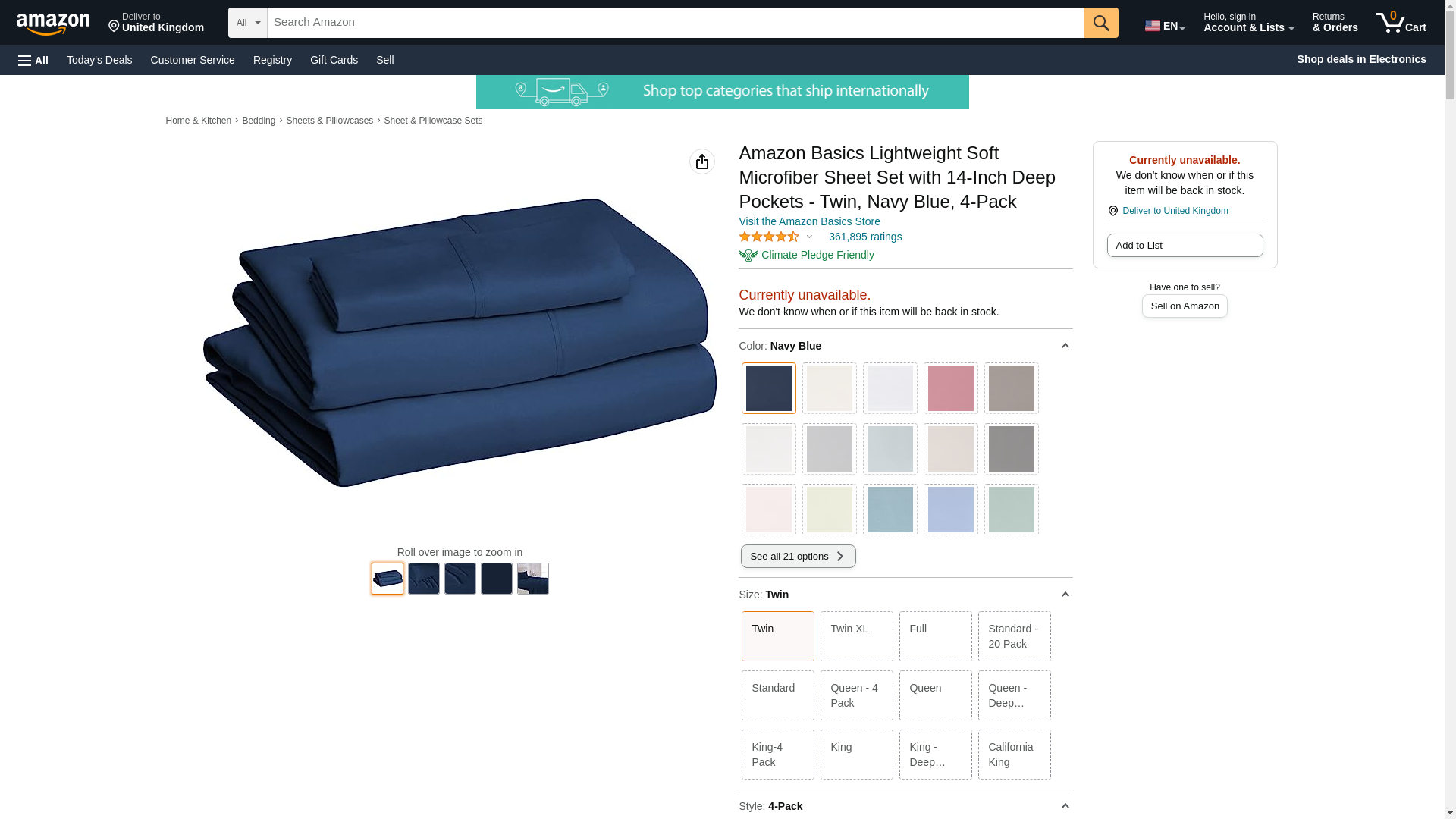 Amazon Basics Lightweight Soft Microfiber 3-Piece Bed Sheet Set with 14-Inch Deep Pockets, Twin, Navy Blue - Pack of 4