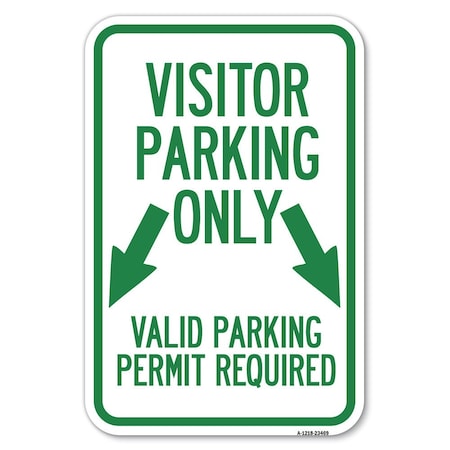 Parking Area Sign Visitors Parking Only, Valid Parking Permit Required with Both Side Down Arrow | 12" X 18" Heavy-Gauge Aluminum Rust Proof Parking Sign | Protect Your Business | Made in The USA