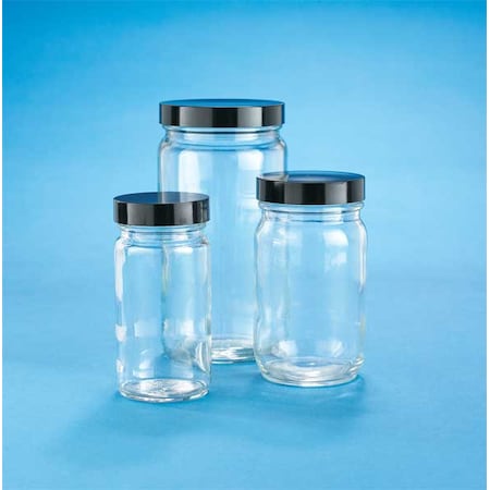 Kimble Type III Soda Lime Glass Clear Wide Mouth AC Medium Round Bottles with GPI Thread Cap, 60ml Capacity (Case of 48)