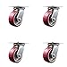 Heavy Duty Large Top Plate Polyurethane on Aluminum Swivel Caster Set of 4 w/5" x 2" Maroon Wheels - Includes 4 Swivel - 3600 lbs Total Capacity - Service Caster Brand
