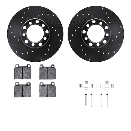 Dynamic Friction Company Front Brake Rotors-Drilled and Slotted-Black with 5000 Euro Ceramic Brake Pads includes Hardware 8612-63012