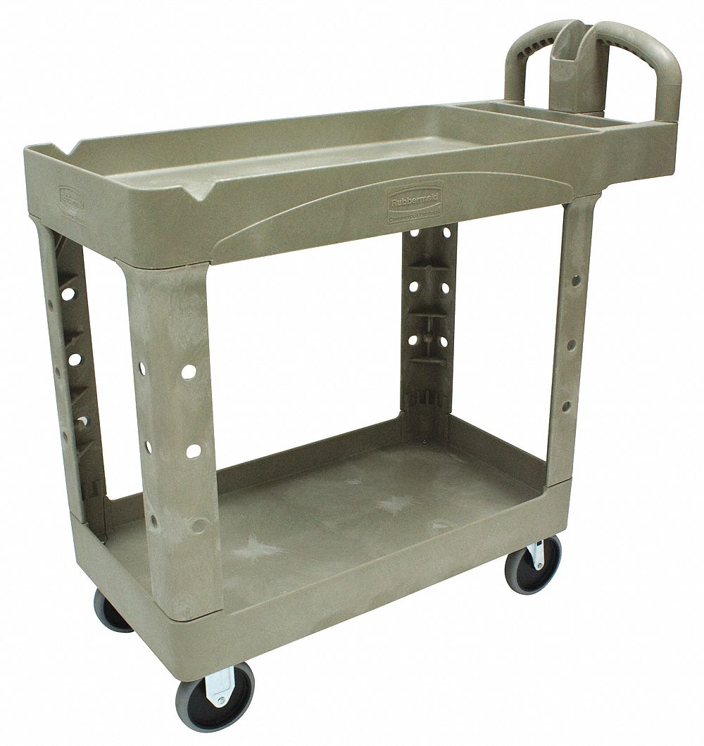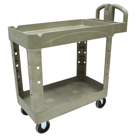 Rubbermaid Commercial Heavy-Duty 2- Shelf Utility Cart, Ergo Handle, Lipped Shelves, Large, Beige (FG454600BEIG)