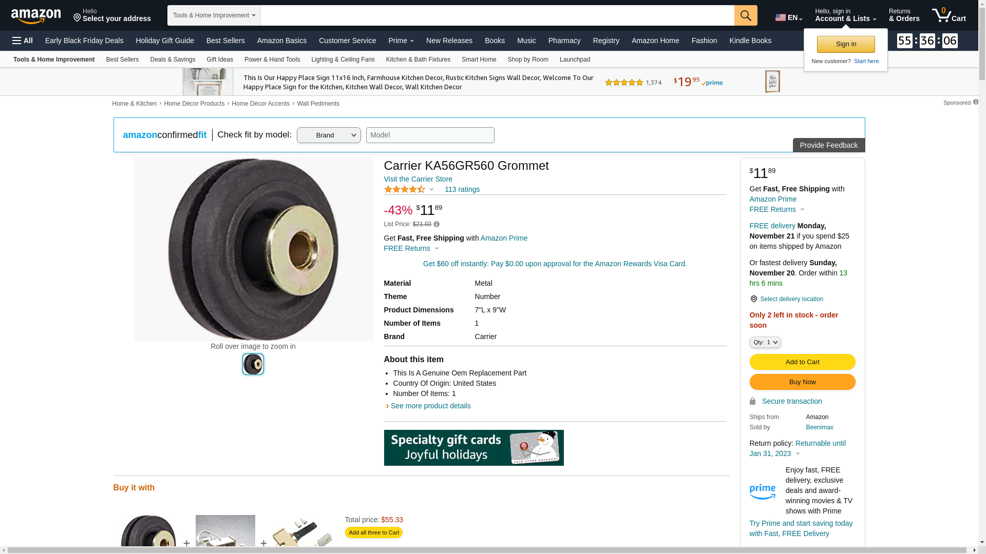 | hvacdiscountstore.com | CAR--KA56GR560 | 1 | 59 | 1 | 1 @ $10.12 |
