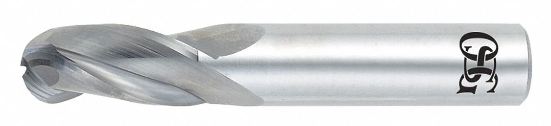 - <b>Item</b>: Ball End Mill <b>Stainless (M) Compatibility</b>: Yes <b>End Mill Style</b>: Ball Nose <b>Milling Diameter</b>: 9/16" <b>Steel (P) Compatibility</b>: Yes <b>End Mill Cutting Type</b>: Center Cutting <b>Dimension Type</b>: Fractional Inch <b>Helix Angle</b>: 30 Degrees <b>Milling Dia.</b>: 9/16" <b>Cutting Direction</b>: Right Hand <b>Cast Iron (K) Compatibility</b>: Yes <b>Shank Dia.</b>: 9/16" <b>Neck Length</b>: Not Applicable <b>Chip-Breaker</b>: No
