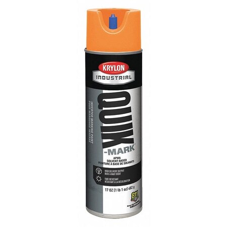 | Feature | <b>Price For:</b> Each <b>Dry Time Tack Free</b>: 2 min. <b>Color Family</b>: Oranges <b>Coverage</b>: 234 to 468 Linear ft. <b>Item</b>: Marking Paint <b>Application Method</b>: Spray <b>Exposure Conditions</b>: Interior/Exterior <b>Surface</b>: Grass, Concrete, Brick, Asphalt, Pavement, Gravel <b>Line Stripping Aerosol</b>: Yes <b>Dry Time</b>: 2 min. <b>Base Type</b>: Solvent <b>Net Weight</b>: 17 oz. <b>VOC Content</b>: 352g/L <b>Size</b>: 20 oz. |