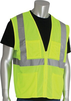 PIP Class 2 MESH Vest, 4 Pockets, Zipper Closure (302-MVGZ4PLY-5X) (50/Each)