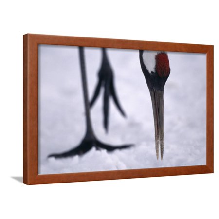 <ul> <li>Title: Red-Crowned Crane Pecking in Snow</li> <li>Artist: DLILLC</li> <li>Paper Type: Photographic Print</li> <li>Product Type: Framed Art Print</li> <li>Framed in SOHO Pecan</li> <li>Arrives ready-to-hang for fast, simple installation</li> <li>Framed Size: 26x18 in.</li> <li>Handcrafted in the USA</li> </ul>