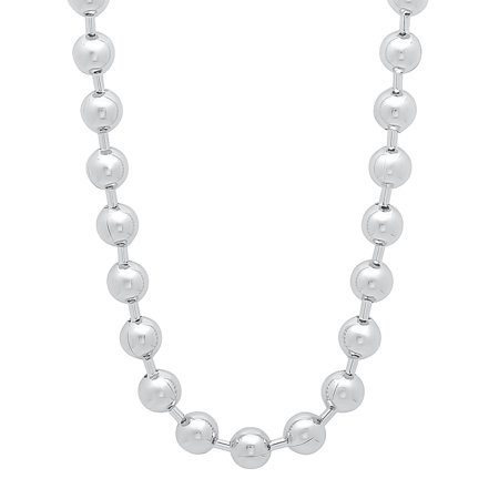 The Bling Factory 6.5mm Rhodium Plated Ball Military Choker Chain Necklace, 18 inches