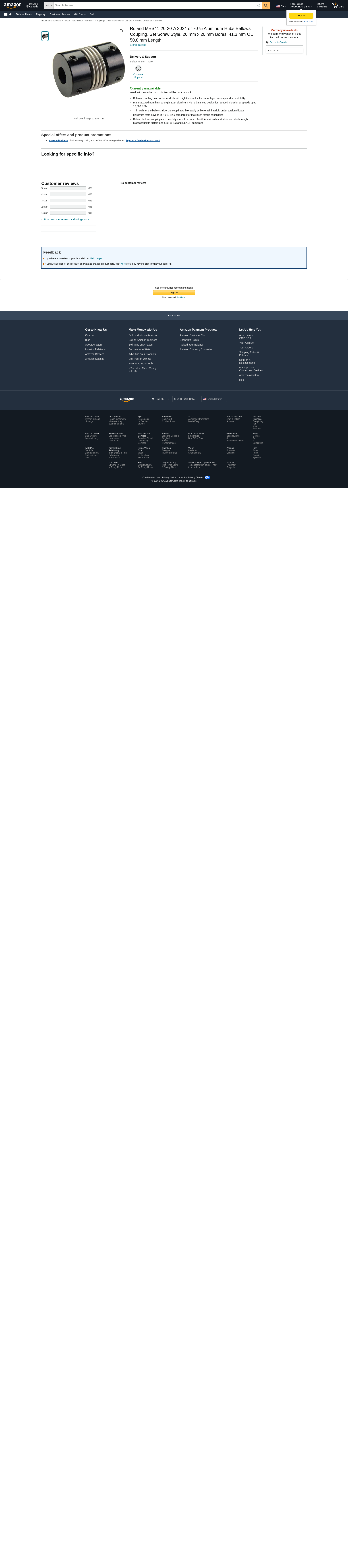 MBS41-20-20-A, 20mm x 20mm Bellows Coupling, Aluminum | Ruland