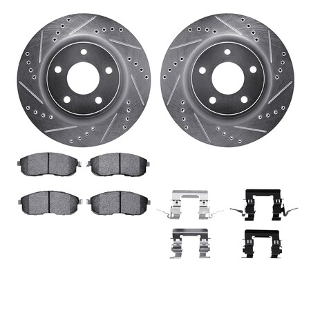 Dynamic Friction Company Front Brake Rotors-Drilled and Slotted-Silver with 5000 Euro Ceramic Brake Pads includes Hardware 7612-67005