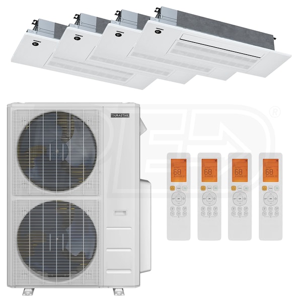 Buy Durastar DRA5H55O06091818 Today. Free Shipping. Check the Durastar Ceiling Cassette 4-Zone System - 55,000 BTU Outdoor - 6k + 9k + 18k + 18k Indoor - 20.2 SEER2 ratings before checking out.