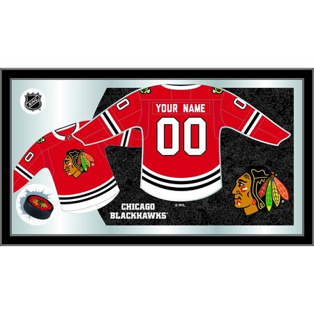 Show your team pride with an Officially Licensed Personalized Jersey Mirror from the Holland Bar Stool Co. This unique mirror displays your team's logo incorporating your custom text across the back of the jersey, in a style that fits any setting. With it's simple but elegant design, colors burst through the 1/8" thick glass and are highlighted by the mirrored accents. Framed with a black, 1 1/4 wrapped wood frame with saw tooth hangers, this 15"(H) x 26"(W) mirror is ideal for your office, garage, or any room of the house. Whether purchasing as a gift for a sports super fan, or for yourself, you can take satisfaction knowing you're buying a mirror that is proudly Made by Holland Bar Stool Company, Holland, MI.