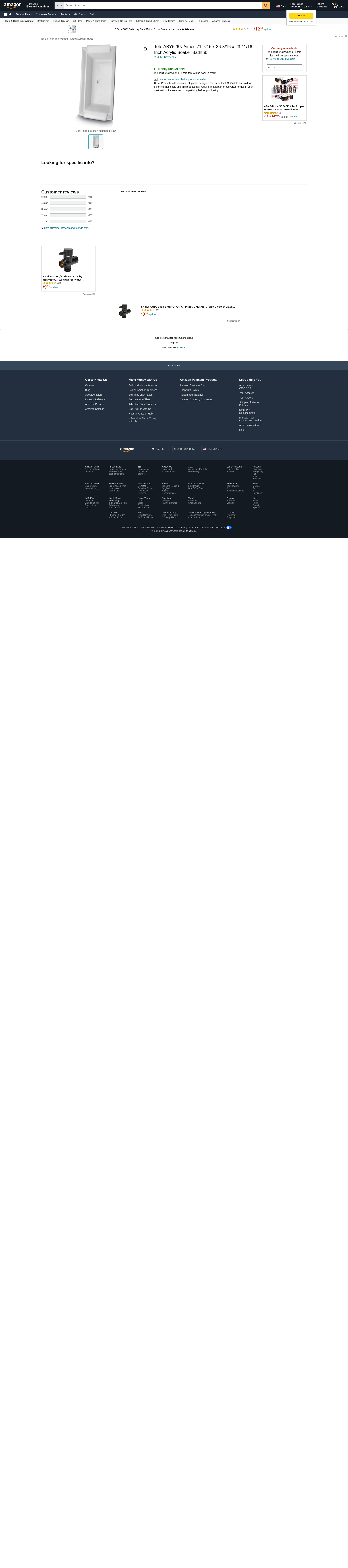 Toto ABY626N Aimes 71-7/16 x 36-3/16 x 23-11/16 Inch Acrylic Soaker Bathtub