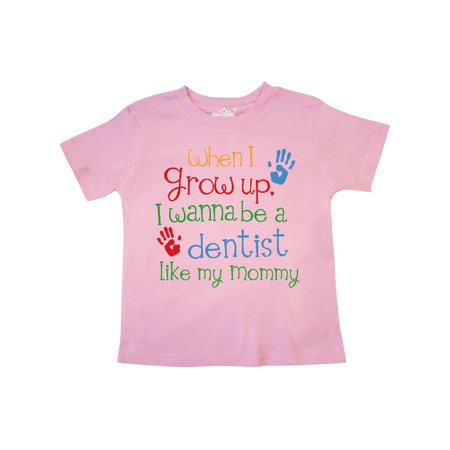 Dentist Like Mommy Toddler T-Shirt has cute handprints design for kids with When I grow up I want to be a Dentist like my Mommy occupation slogan for the son or daughter of a Dentist.
