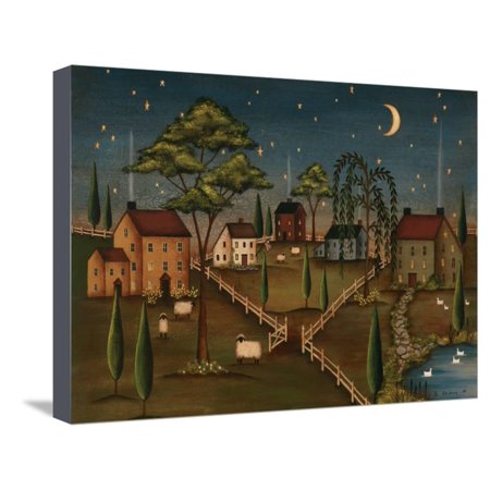 <ul> <li>Title: Village Night</li> <li>Artist: Kim Lewis</li> <li>Product Type: Stretched Canvas Print</li> <li>Expertly finished and printed on artist-grade cotton</li> <li>Stretched & Ready to Hang</li> <li>Handcrafted in the USA</li> </ul>