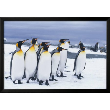 <ul> <li>Title: King Penguins Standing in Snow</li> <li>Artist: DLILLC</li> <li>Product Type: Framed Art Print</li> <li>Framed in SOHO Black</li> <li>Arrives ready-to-hang for fast, simple installation</li> <li>Framed Size: 38x26 in.</li> <li>Handcrafted in the USA</li> </ul>