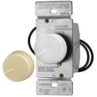 EATON RI061-VW-K2 Core React Non-Preset Rotary Dimmer, 600 W, 120 Vac, 1 Pole, Ivory/White