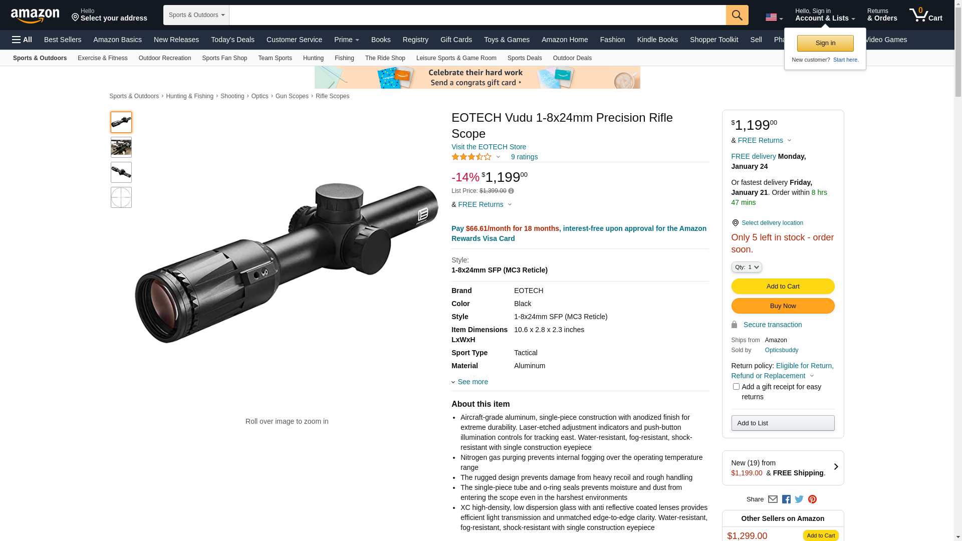 - EOTECH Vudu 1-8x24mm Precision Rifle Scope with MC3 Second Focal Plane Reticle (Model VDU1-8SFHC3)