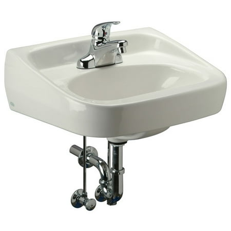 Z5341-PED Faucet Mount: Single Hole Features: -Bathroom sink. -Wall mounted. -Front overflow. -For use with concealed arm carrier systems and half pedestal. Installation Type: -Wall mount sink. Style: -Traditional. Sink Shape: -Rectangular. Finish: -White. Hardware Finish: -Stainless steel. Material: -Ceramic. Overflow: -Yes. Commercial Use: -Yes. Faucet Mount 4" Centers - Number of Faucet Holes: -3. Faucet Mount 8" Centers - Number of Faucet Holes: -3. Faucet Mount Single Hole - Number of Faucet Holes: -1. Dimensions: Overall Length - Side to Side: -21.5". Overall Width - Front to Back: -18.25". Overall Depth - Top to Bottom: -25.2". Basin Length - Side to Side: -16.5". Basin Width - Front to Back: -10.25". Overall Product Weight: -22 lbs.