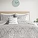 Comfort Spaces Vivian 3 Piece Comforter Set Ultra Soft All Season Lightweight Microfiber Geometric Metallic Print Hypoallergenic Bedding, Twin/Twin XL, Grey/Silver