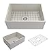 BOCCHI Contempo Farmhouse Apron Front Fireclay 27 in. Single Bowl Kitchen Sink with Protective Bottom Grid and Strainer in Biscuit