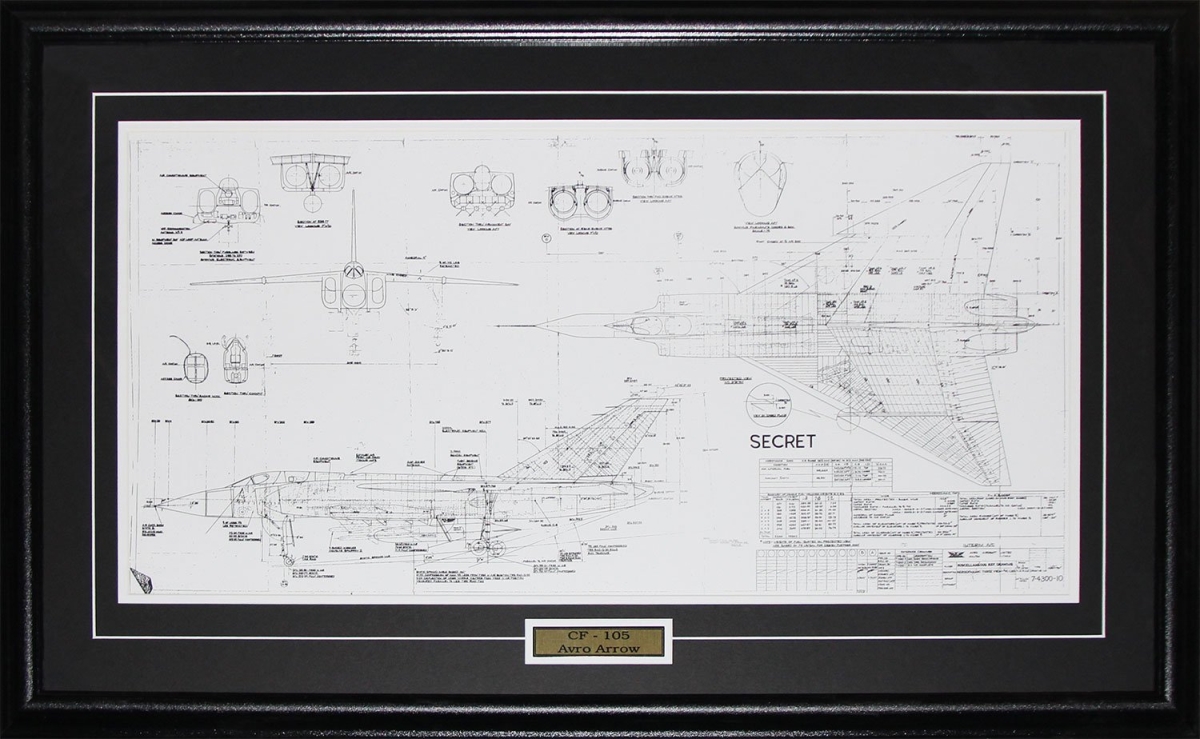 Midway Memorabilia cf105-avroarrow Avro Canada CF-105 Arrow Blueprint Canadian Militaria Aviation Collector Photo Frame