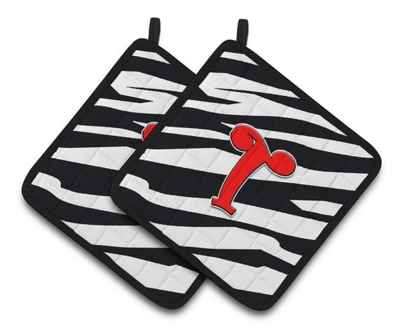 Carolines Treasures CJ1024-TPTHD Monogram Initial T Zebra Red Pair of Pot Holders, 7.5 x 3 x 7.5 in.