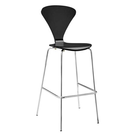 Modway Passage Mid-Century Modern Bar Stool with Chrome Legs in Black