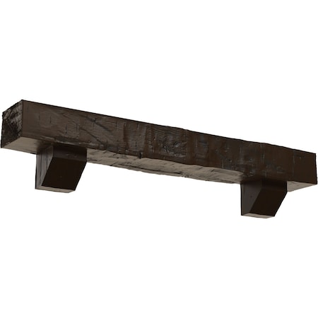 4" H x 8" D x 60" W Hand Hewn Faux Wood Fireplace Mantel Kit w/ Ashford Corbels, Burnished Mahogany