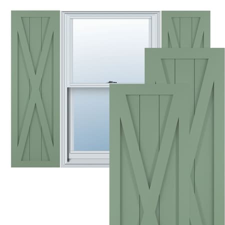 Ekena Millwork TFP001FH12X059TG True Fit PVC Single X-Board Farmhouse Fixed Mount Shutters, (Per Pair-Hardware Not Included), 12"W x 59"H, Track Green