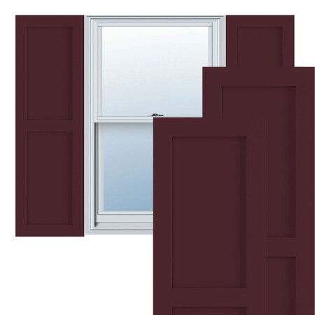 Ekena Millwork 15"W x 49"H True Fit PVC Two Equal Flat Panel Shutters, Wine Red (Per Pair - Hardware Not Included)