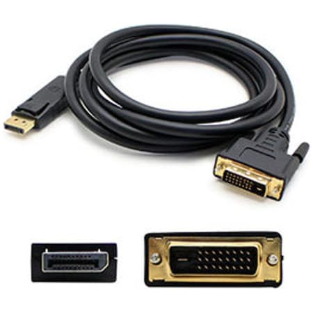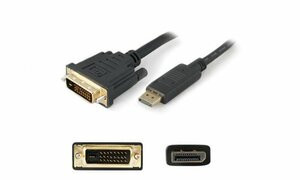 AddOn Accessories 10 ft DisplayPort to DVI cable connects a DisplayPort video source to a DVI monitor with a male-to-male connection without the need for a separate adapter. The high bandwidth, high resolution cable supports up to 1920x1200 or 1080p resolutions. As a passive device, it requires a DP++ port, which allows DVI and HDMI signals to run through the port. The DISPLAYPORT2DVI10F includes a 3 year warranty.<br /> Product Type: Video Cable<br /> Cable Type: DisplayPort/DVI<br /> Cable Length: 10 ft<br /> Connector on First End: 1 x DisplayPort Male Digital Audio/Video<br /> Connector on Second End: 1 x 25-pin DVI-D (Dual-Link) Male Digital Video<br /> Device Supported: Video Device, Monitor