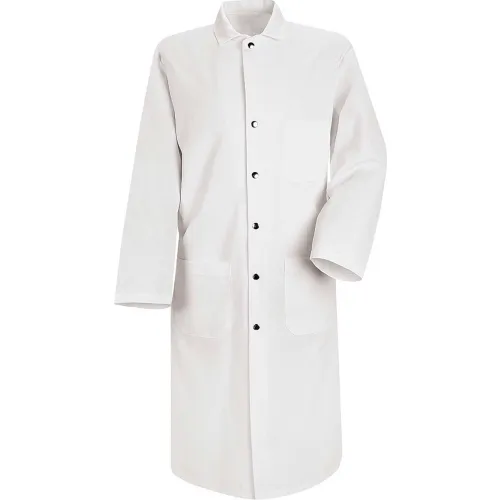 Red Kap Men's Snap-Front Spun Polyester Butcher Coat, White, Large
