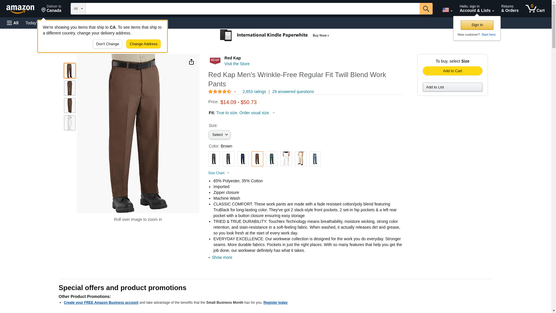 Red Kap Men's Wrinkle-Free Work Pants, Brown, 33W x 32L